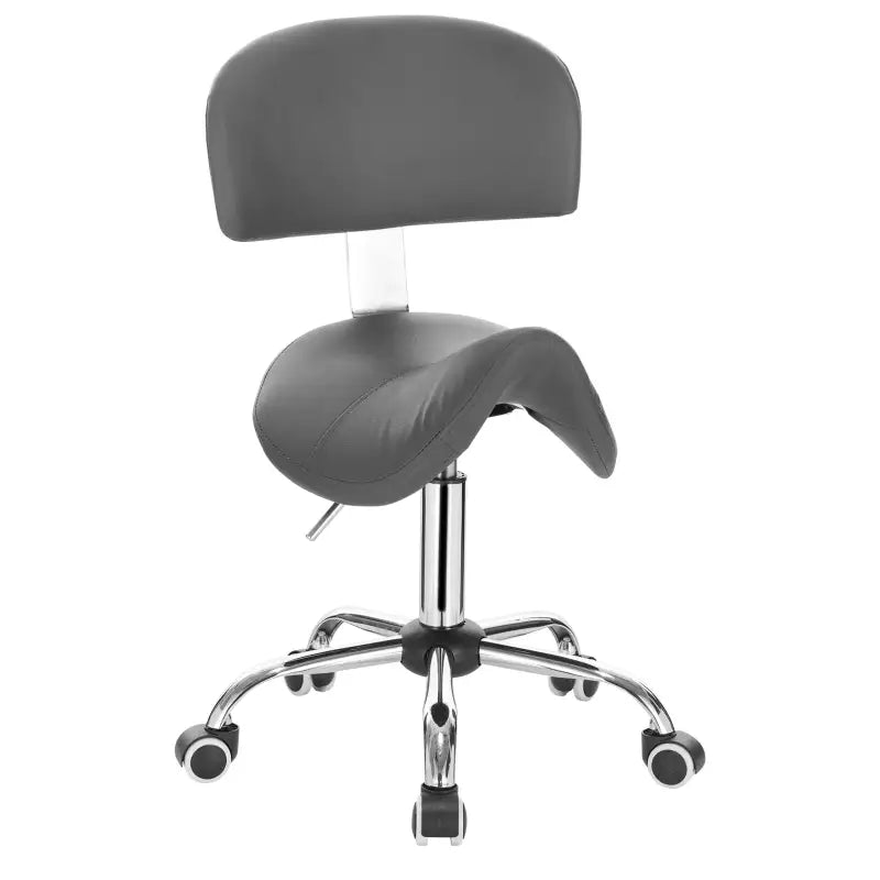 Deze draaistoel is voorzien van een brede rugleuning die de rug ontlast en ondersteunt, waardoor de spieren en de wervelkolom worden ontspannen. Met een eenvoudige hendel onder de zitting kan de hoogte van de zitting worden aangepast tussen 44 en 56 cm. De stevige stalen constructie en de 5-sterren basis zorgen voor stabiliteit en duurzaamheid, waardoor de kruk moeiteloos een gewicht tot 120 kg kan dragen. De kunstlederen bekleding is slijtvast, waterafstotend en gemakkelijk schoon te maken.