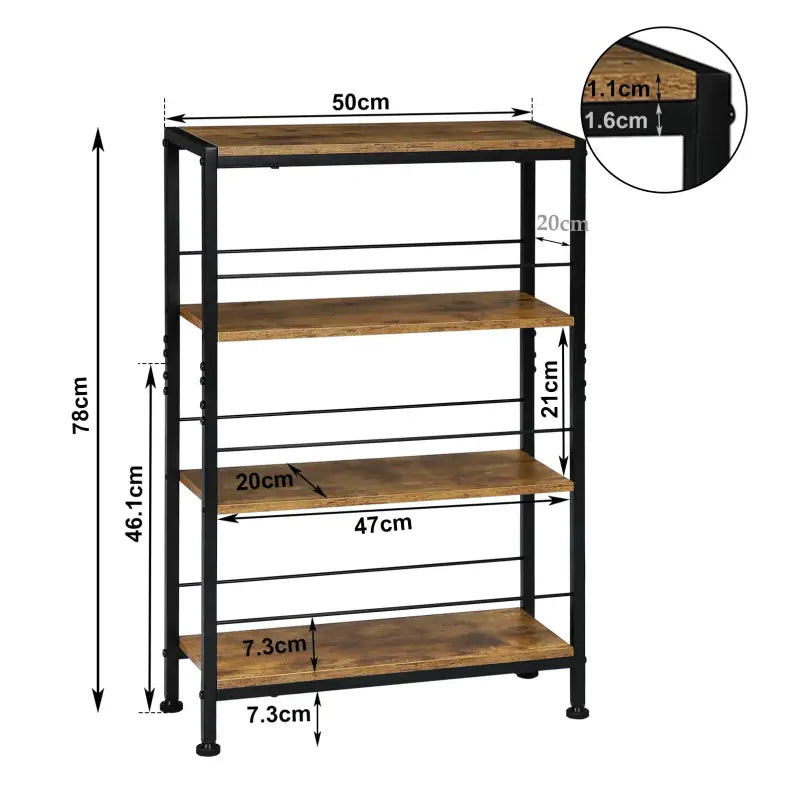 De BukkitBow Boekenkast combineert functionaliteit met een modern design, perfect voor het toevoegen van stijl en opslagruimte in elke kamer van uw huis. Gemaakt van hoogwaardige E1 klasse MDF-planken en een robuust metalen frame, biedt deze staande kast een solide en roestbestendige structuur die tot 60 kg kan dragen, met 15 kg per plank. De afmetingen van 50 x 78 x 20 cm zorgen ervoor dat het niet alleen perfect past in kleinere ruimtes maar ook voldoende opslagruimte biedt over de vier niveaus.