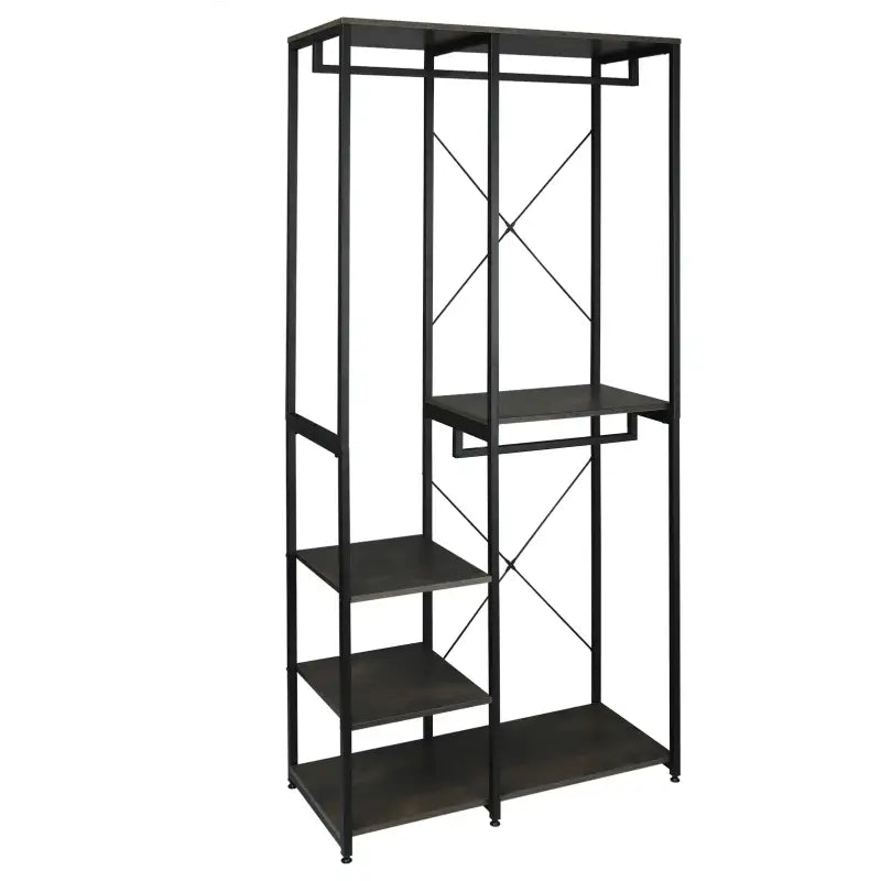 Het kledingrek is vervaardigd uit hoogwaardig geverfd staal en E1-klasse spaanplaat, wat zorgt voor een waterdichte en krasbestendige afwerking. De X-vormige draadstructuur garandeert stabiliteit en stevigheid, met een draagvermogen van 20 kg per kledingstang en 10 kg per plank. Verstelbare antislipvoetjes beschermen de vloer tegen krassen en verminderen geluidsoverlast tijdens het verplaatsen. Dit veelzijdige kledingrek kan worden aangepast aan verschillende ruimtes en doeleinden, waaronder keukens, woonkamers, slaapkamers, kantoren en meer.