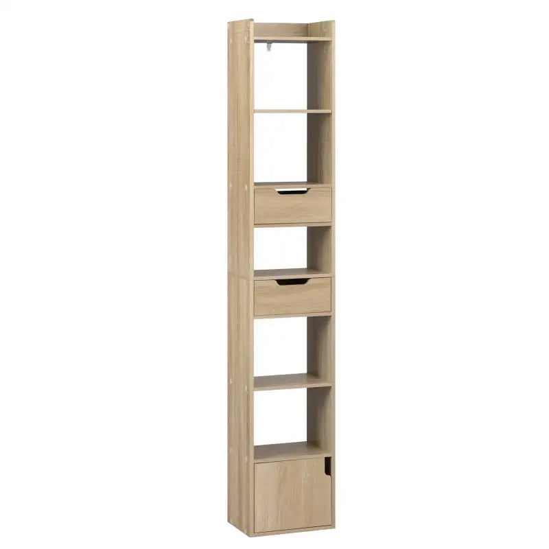 BukkitBow - Staande Boekenkast - Eiken Hout met Melamine Fineer - Ruime Opslag met Deur en Laden