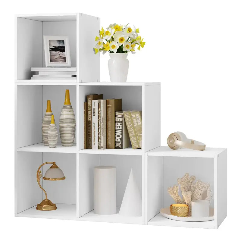 Met de BukkitBow Trendy Opbergkast kunt u op een stijlvolle en georganiseerde manier uw spullen opbergen. Deze moderne witte boekenkast is ontworpen met een eenvoudige uitstraling die perfect past in elke ruimte, of het nu de woonkamer, slaapkamer, studeerkamer of kantoor is. Met een totale afmeting van 90x90x30 cm (B x H x D) en 6 flexibele vakken biedt deze opbergkast veelzijdige opbergruimte om aan uw behoeften te voldoen.