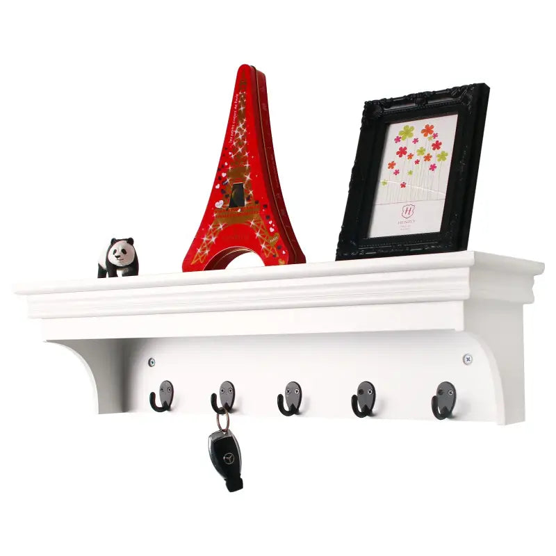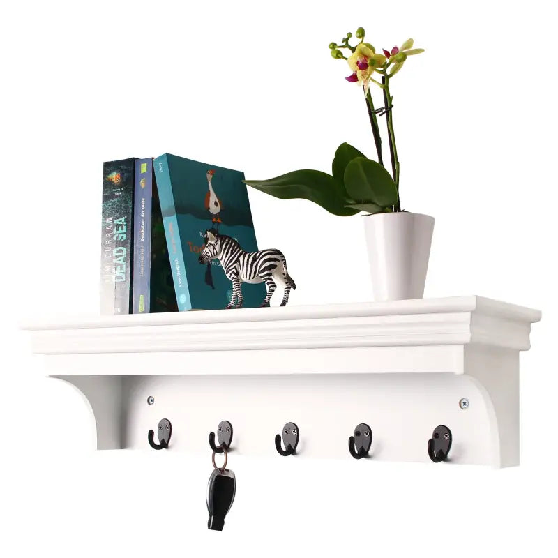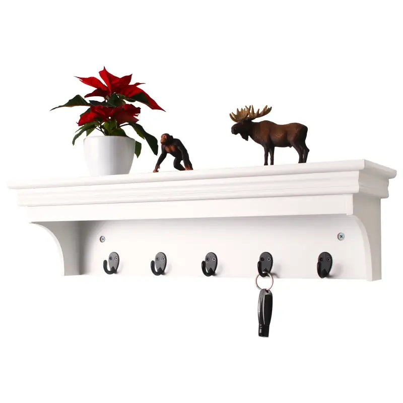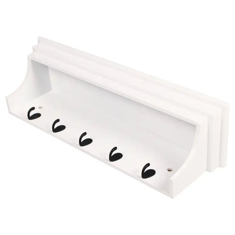 BukkitBow - Muurplank / Kapstok - Hoge Kwaliteit MDF Hout - Mat Wit - Barok Design met 5 Haken - 60x16x16 cm