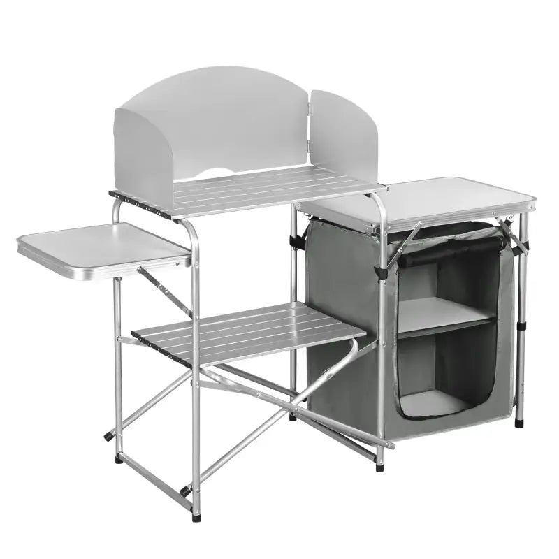 Diese Campingküche ist auf Mobilität und Komfort ausgelegt. Nach dem Zusammenklappen nimmt er nur 50 x 12 x 80 cm ein und lässt sich daher problemlos als Handgepäckkoffer transportieren. Mit seiner kompakten Größe passt er auch in den kleinsten Kofferraum. Bei Nichtgebrauch kann es problemlos unter einem Bett oder hinter einer Tür verstaut werden und ist somit ideal für Campingabenteuer und Outdoor-Aktivitäten.