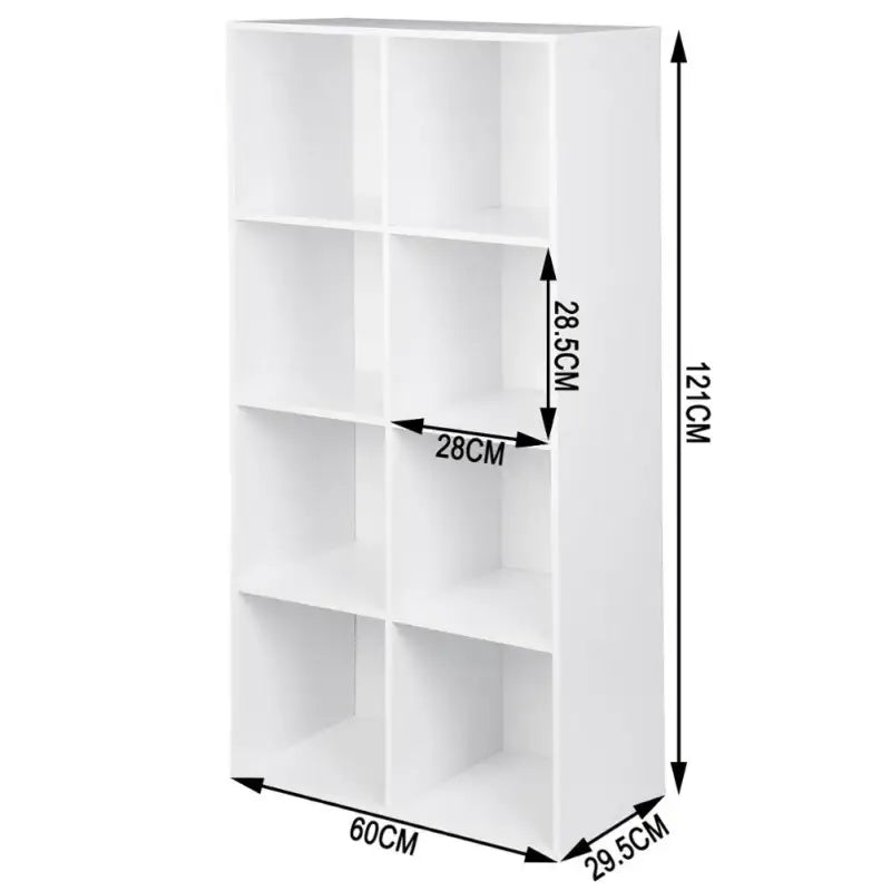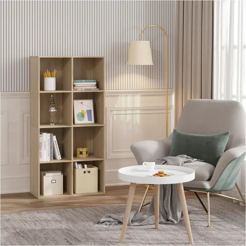 Mit 8 geräumigen Aufbewahrungswürfeln bietet dieses Bücherregal reichlich Platz, um alle wichtigen Dinge organisiert aufzubewahren. Egal, ob Sie Bücher, Spielzeug, Lehrbücher, Akten oder Bilderrahmen aufbewahren möchten, dieses Bücherregal bietet die perfekte Lösung. Dank seines kompakten Designs nimmt das Bücherregal wenig Platz ein und sorgt für Ordnung und Ordnung in Ihrem Zuhause oder Büro.