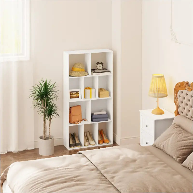 BukkitBow – Weißes Würfel-Bücherregal – 4-stöckiges Regal mit 10 offenen Fächern – Zur Bücherpräsentation – 60 x 20 x 120 cm