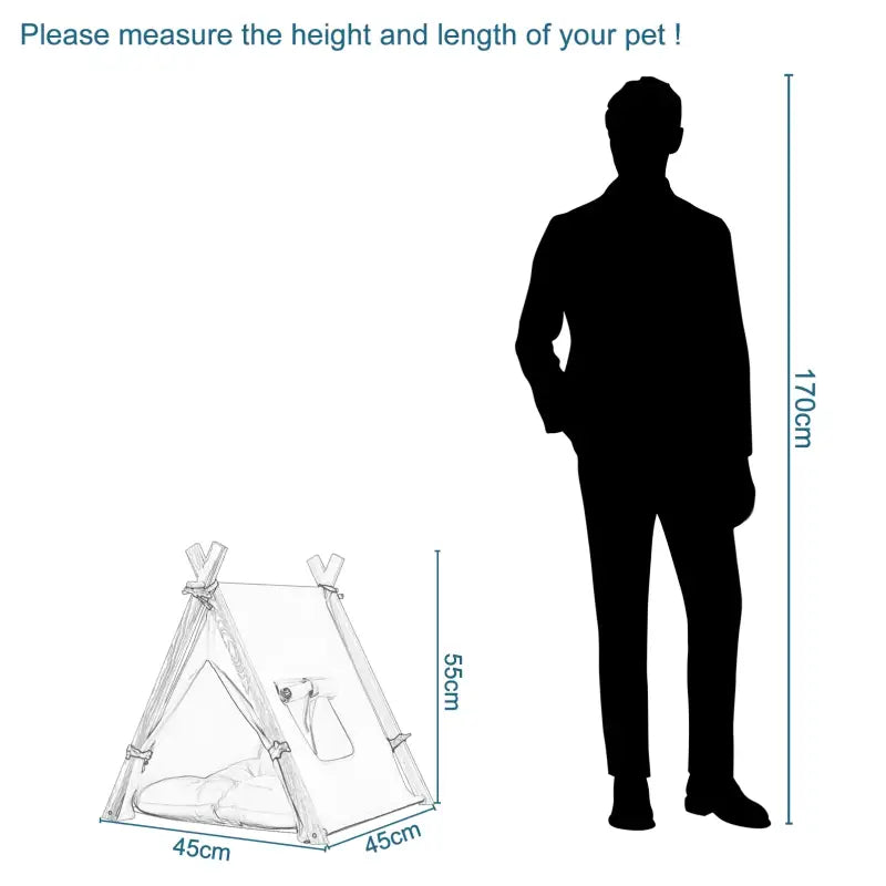 Das Tipi-Zelt ist mit einem seitlichen Fenster ausgestattet, das mit einem Seil geöffnet werden kann. Dieses Fenster sorgt für Belüftung und Komfort, während die niedliche Form jedem Raum eine warme Atmosphäre verleiht. Der solide Holzständer, das Baumwollsegeltuch und das weiche Kissen mit PP-Baumwollfüllung bilden zusammen das ultimative Zuhause für Ihre Haustiere. Durch die einfache, werkzeuglose Montage lässt sich dieses Zelt leicht auf- und abbauen, was es zu einer praktischen und vielseitigen Ergänzung Ihres Haustierbedarfs macht.