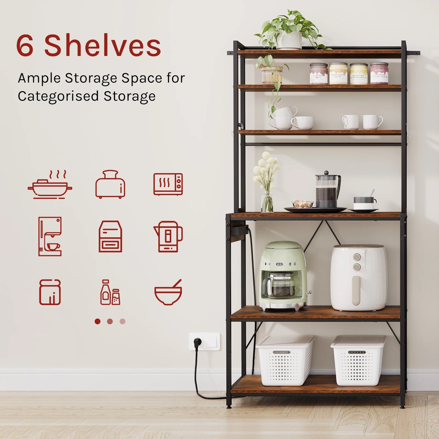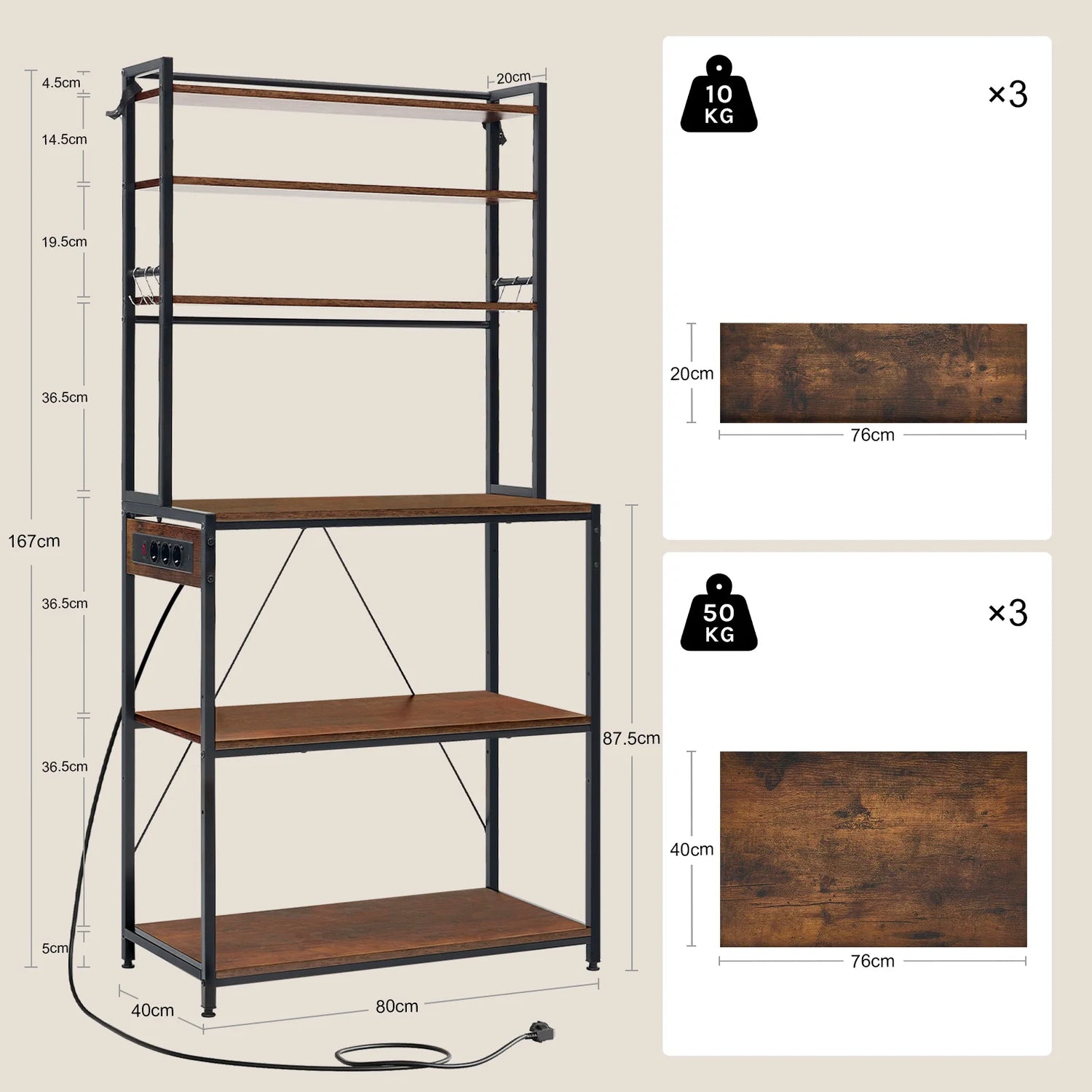 Heeft u behoefte aan een centrale plek voor al uw keukenapparatuur zonder gedoe met losse verlengsnoeren? Dit innovatieve vintage keukenrek is uitgerust met een geïntegreerde powerstrip met drie stopcontacten en een kabel van 1,5 meter. Hierdoor creëert u in een handomdraai een professionele koffiebar of een handig werkstation voor uw magnetron en airfryer. Dankzij de 6 meegeleverde S-haken aan de zijstangen heeft u bovendien uw favoriete keukengerei, zoals pollepels en handdoeken, altijd binnen handbereik. Dit meubelstuk is de perfecte oplossing voor wie droomt van een georganiseerde en functionele keuken.