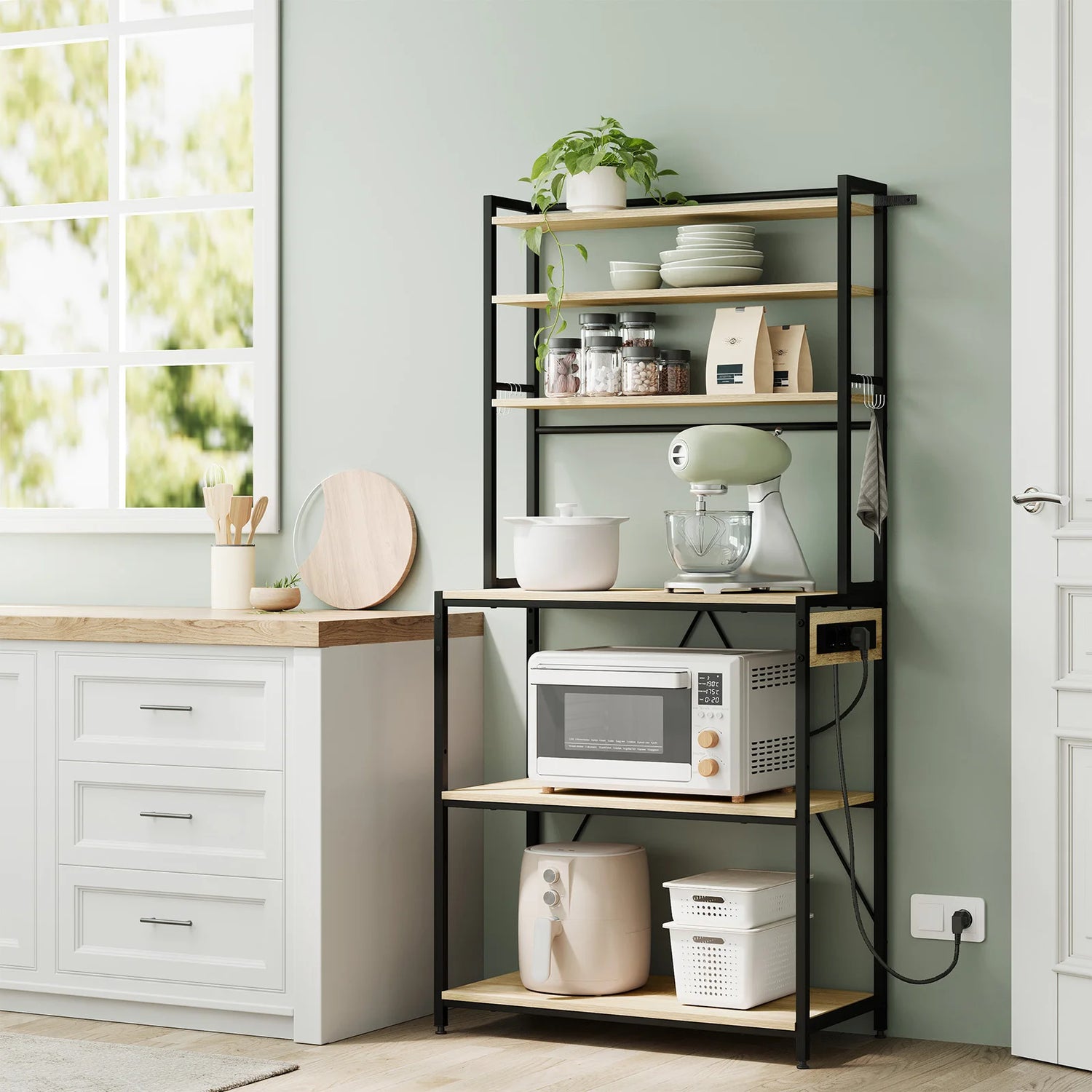 Luxe Keukenrek met Stopcontact – Industrieel Magnetronrek met 6 Haken ✨