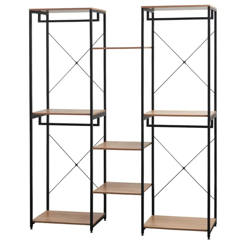 BukkitBow - Grote Kledingkast/ Garderobe Kast - Dubbele Rekken - Inclusief Kledinghaken en Opbergplanken - 165X205X40CM - Zwart met Licht Eikenhout