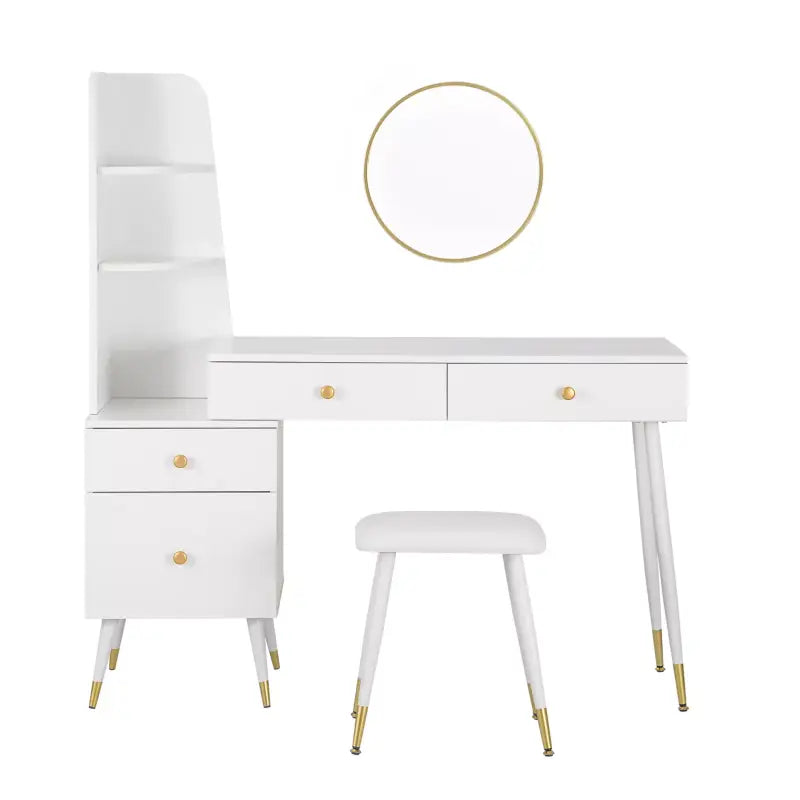 BukkitBow - Luxe Kaptafel met Kruk en Ronde Spiegel en Opbergkast - Gouden Poten