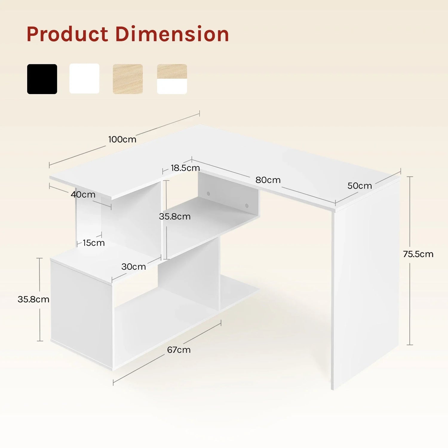 Luxe L-vormig Hoekbureau – Modern Computerbureau met 4 Open Vakken ✨